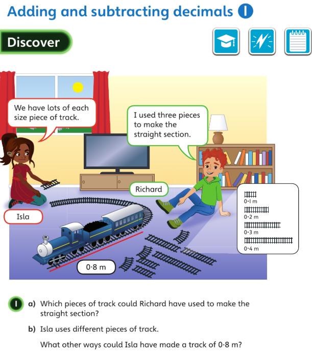 - Complete unit 12: Decimals, lesson 1. The children will be looking at a new concept of adding and subtracting decimals. The children have already worked with adding and subtracting fractions with the same and different denominators. Explain to your children that fractions and decimals have a lot in common with each other (where whole numbers are broken into parts making them less than a whole number) e.g. 1/10 is the same as 0.1 (https://learnzillion.com/lesson_plans/7373-understand-the-value-of-a-digit-in-a-decimal-number/) Work through the first 3 pages of lesson 1 (do not worry if your child does not complete this in one session. Please find the starter picture to ask questions to get them thinking about demials in the links at the bottom of the blog.